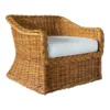Fabulous set of eight faux Bois rattan arm chairs with target back custom made by McGuire for a club on Boca Grande Fl. These have been repaired and touched up but original fabric was left and leather wrappings have been fixed. Because they were custom made for this club not all are the same size as some vary in sizes slightly. These are solid heavy chairs and would be amazing lacquered and upholstered or left as is with some new fabric.