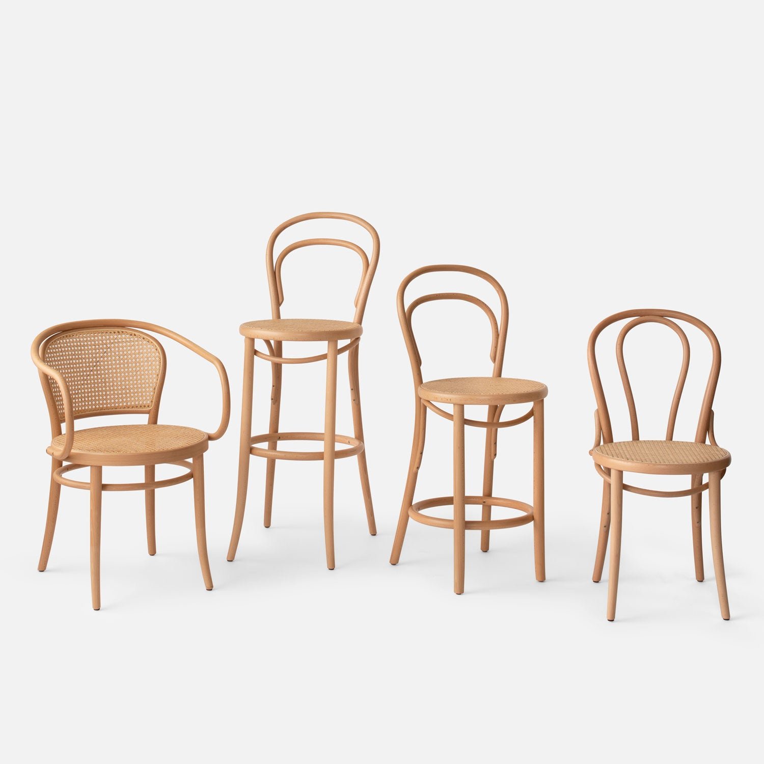 Originally designed by Michael Thonet in the mid-1800s, the lightweight TON 14 Chair is handcrafted using revolutionary steam bending techniques by TON in the original Thonet factory. Lovingly nicknamed “the chair of the chairs,” No 14 is considered one of the world’s most prominent classics. Rooted in their elegance and form, these durable yet inviting chairs feature natural cane seats and a graceful frame arch, making them the perfect addition to modern and traditional spaces. Available in a variety of sizes in natural Beech. Crafted with care in the Czech Republic.